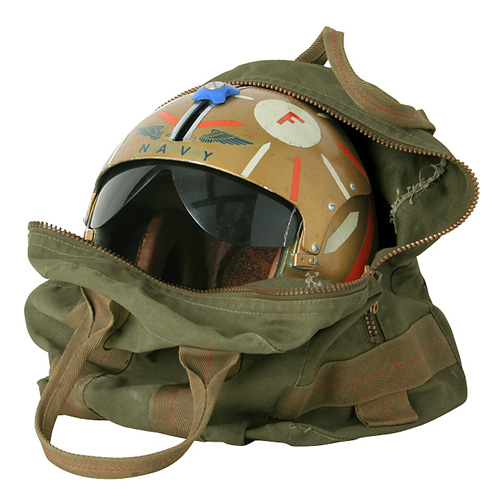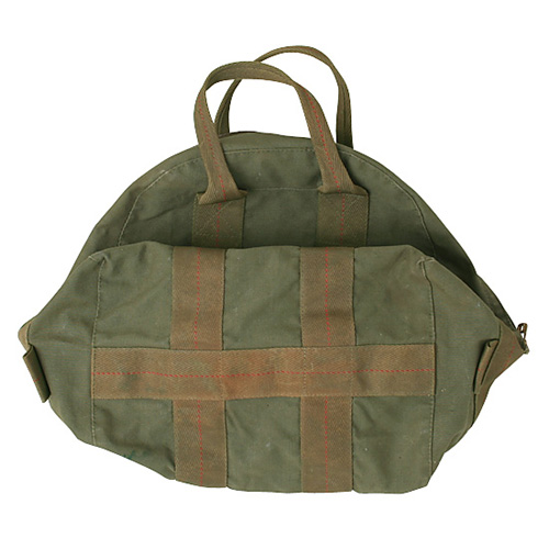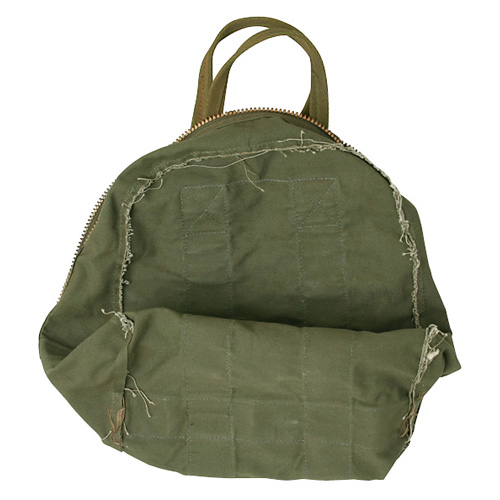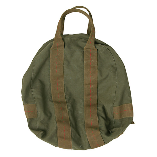 50年代、US NAVYにおいて正式採用されたヘルメット・バッグは存在しなかったと推定され、多く見かけるのがここで紹介する類のコットンキャンバス生地とナイロンストラップでカスタム・メイドされたヘルメットバッグである。