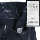 タフで軽やか、1930年代初期、開発された10.5オンス ミリタリーデニムを用い製作されたUS ARMY初のブルーデニム ファティーグ トラウザーズ。大型張り付けポケット、ストレートラインが特徴のパンツ腰後上部には、20-30年代の民間ワークパンツ&デニムパンツに多く見られるCinch Back-シンチバック(腰調節ベルト)が縫い付けられていた。インディゴ染料でロープ染色された8番リング紡糸をタテ糸に、トップダイと呼ばれる紡糸前の段階でダークブルーに染められた綿花と生成の綿花を混ぜ合わせライトブルー色に紡がれた10番リング紡糸をヨコ糸に用いた設計から生まれた独特の風合いは後継モデルM-40、及び40-50年代NAVYデニム衣料に引き継がれた。古き良き時代の