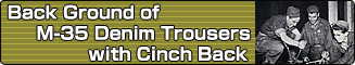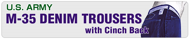 US ARMY M-35デニムトラウザーズ、シンチバック(Cinch Back)付きモデル