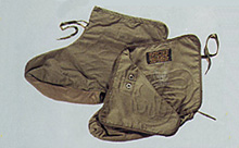 別名エスケープシューズとも呼ばれるTYPE E-2は1944年11月採用されたが、実際の支給には至らなかった。その形状は実にM-43に酷似しており、特に底の形に注意していただきたい、この底型はMCやNAVYのそれではなく紛れもなくM-43同様ARMY独特の形状であり、ラスト(木型)もARMYサービスシューズの物を使用された事がわかる、違いはCOMPOSITION SOLE & HEEL と呼ばれるラバーソール、ラバーヒールがE-2にはつかず、レザーソール、レザーヒールである点のみである。ちなみにTYPE E-1はM-43同様COMPOSITION SOLE, HEELであった。 |