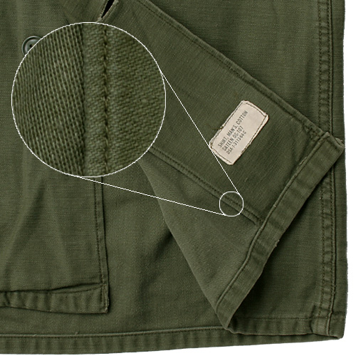 肩、アームホール、サイドから袖下、全て『ダブル・チェーンステッチ』での巻き縫い。