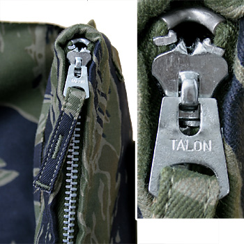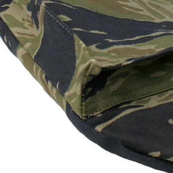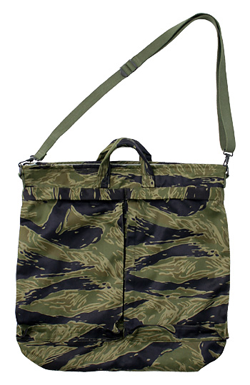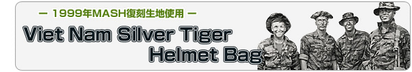 今や伝説とも呼ばれるMASH復刻シルバータイガー。最終ロット残反生地(若干のプリント滲み、版ズレあり)を用い制作された『シルバータイガー・ヘルメットバッグ』。 Nam戦時の実物ヘルメットバッグより再現されたパターン、仕様、ライニングに用いられたNam戦実物カモポンチョライナー、Talonジッパーと共に蘇ったタイガーマニアには夢ともいうべき『タイガーヘルメットバッグ』。今世紀最後の少量限定特別制作! ! お買い忘れの無いように! !