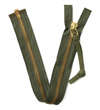 Scovill 70s Brass #10 Separating Zipper, Interlocking Slider, OD Tape, 47cm, NOS