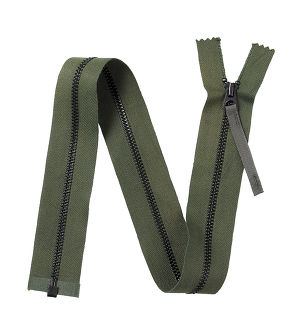 Scovill, 80s, Brass-Black Finish, #10, Separating Zipper, Interlocking, Sage Green Tape, NOS