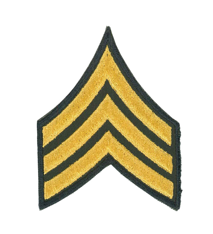 Our Reproduced Chevron Sergeant in cut edge style is matched to the original in shape, color and material.