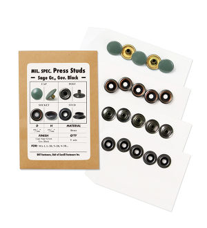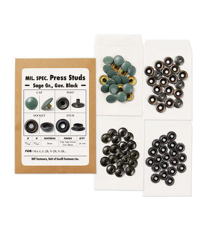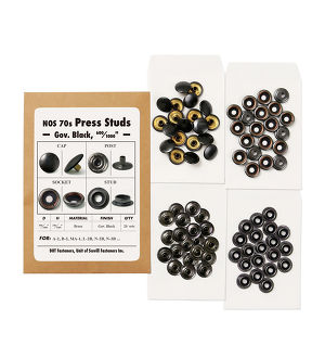 The press studs is New Old Stock from 70s. The press studs with "DOT" marking has been one of the major press studs since 40s. It comes 100 caps(painted in Sage Green color), 100 sockets, 100 posts and 100 studs in set.
