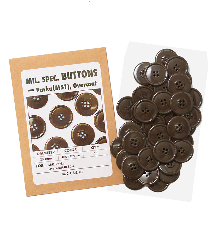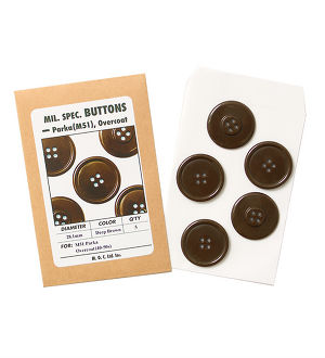 We suppose that most of collectors and people who love Military Surplus clothing ever had missing buttons on the collections. And it is not so easy to find authentic buttons for the replacement, in fact. We've been having same problems as well. Thus, we've started to reproduce and sell Mil. Spec. Buttons which were used mainly in 40-60s. Our Reproduced Buttons are matched to the original in shape, diameter, color and material.
