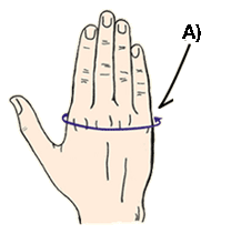 • Size Selection: How to measure your hand • With your palm stretched out, measure the circumference of the joint (A) of your bigger hand of left or right. • With your palm stretched out, measure the length at the center of your palm (B) of your bigger hand of left or right. |