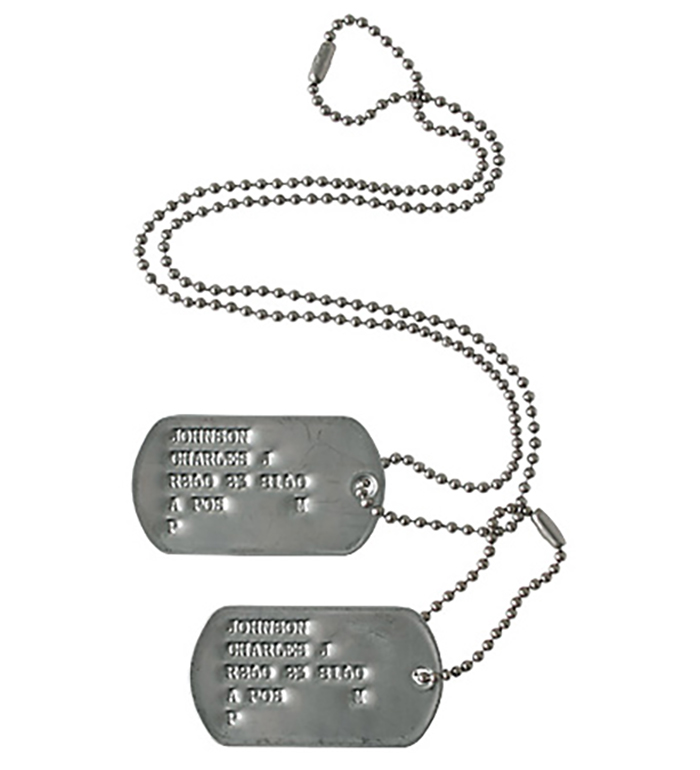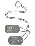 This is a guide page for those who wish to make a "Viet Nam War Style Dog Tag," which was adopted from the mid-1950s to early 1960s and was used throughout the Vietnam War. The plate used is an oval, matte type that first came into use during this period and continues to be used today. The chain is an authentic ball chain (long and short) set of the same type that is still in use today.