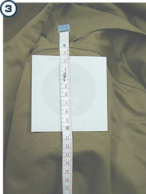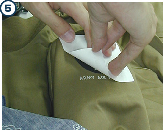 Peel off the protective paper on the ink side of the insignia. Put the insignia so that its top can be printed about 1 inch from the seam of the left shoulder and its ink surface comes in contact with the textile.