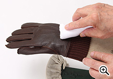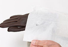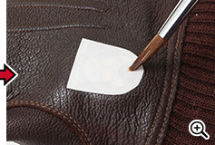 Note) Make sure that leather paint color does not adhere to the damp cloth at the inconspicuous part before the wiping off.