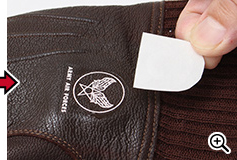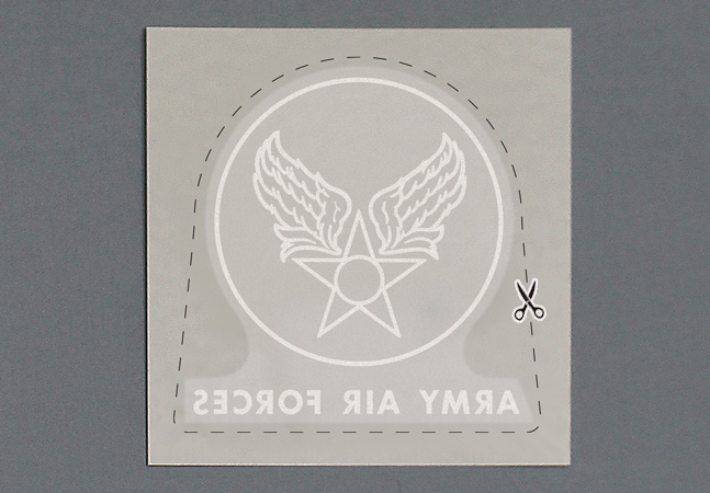 Our New Model of AAF Decals for leather can be transcribed more easily and quickly than the classic style decal. However, things to note are more or less same as the classic style decal. There are many types of leather in the world, and different finishes as well, some of which may not fit our reproduction decals. We do not guarantee satisfactory with results without failure for all types of leather. Also, the decal is a very thin film. We do not guarantee the damage of decals during transfers or the loss of clothing caused by transcription errors. We sincerely hope that your decal transcription will be completed with satisfactory results without failure.