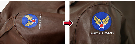 Our New Model of AAF Decals for leather can be transcribed more easily and quickly than the classic style decal. However, things to note are more or less same as the classic style decal. There are many types of leather in the world, and different finishes as well, some of which may not fit our reproduction decals. We do not guarantee satisfactory with results without failure for all types of leather. Also, the decal is a very thin film. We do not guarantee the damage of decals during transfers or the loss of clothing caused by transcription errors. We sincerely hope that your decal transcription will be completed with satisfactory results without failure.