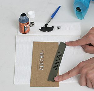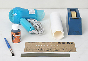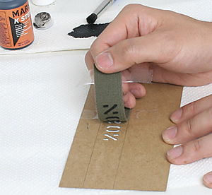 1) Settle Name Tape by Scotch tape along the two lines at the back of Stencil Board.