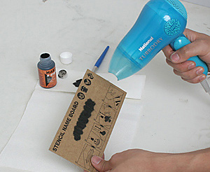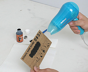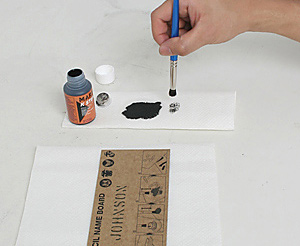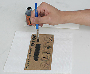 2) Using Stencil Brush, apply Stencil Ink from front side. Don't try to print in one time with too much ink to get fast result. We recommend you to print dividing 4 to 5 times with little ink, and make name tape dry by Drier after each printing to avoid deplorable mistake.