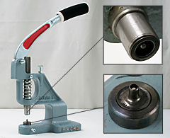 We're glad to introduce here The Japanese Traditional Hand -Press Tool which works very good for attaching Press Studs. It can be operated quiet, accurately avoiding unnecessary mistakes.