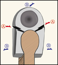 1) First, cut the two points of (A) by a nipper or any tool without damaging zip tape. (Refer to the left illustration.) It usually needs to take off teeth 1" long.