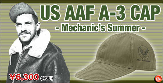1942年採用『AAF Mechanic's Cap, Type A-3』はHBT(ヘリンボンツイル)を用いた米軍初のワークキャップであり、ベースボールキャップ型の形状はその後の米軍野戦/作業帽の原型となった。タフでヤンキーな『A-3 Cap』はメカニックスのみならず、多くのパイロット、クルー達にも好んで用いられた。