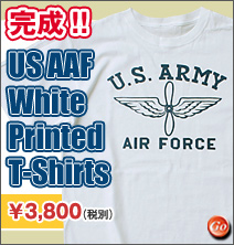 1944年、"School of Air Evacuation"(撤退飛行スクール/カンサス州 Bowman)において、C-54輸送機内での担架の設定を学ぶ『飛行看護士達』。彼女らの着用する『AAFロゴ入り T-シャツ』が今回の復刻『US AAF White T-Shirts』である。