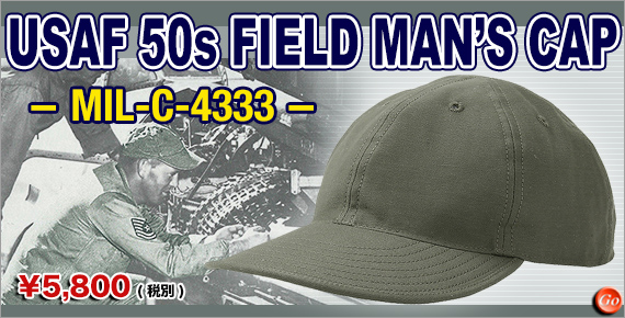 F-94Cのヴァルカン砲を整備するUSAF Field Man(地上作業員)、ヘッドにあるのが『Field Man's Cap(MIL-C-4333)』。1950年代半ば米空軍はフライトスタッフ及地上要員衣料の基本色をSAGE GREENと決定し、1963年頃まで継続使用された。使用期間が短いことから現存数は極めて少ないが、トップに6個の空気穴をもうけられたSAGE GREEN色のCAPは50年代米空軍を代表する『Utility Cap(作業帽)』であり、多くのパイロットが愛用したことでも知られる。