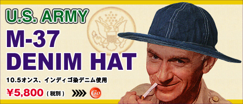 以前より、古着好きの間で人気のあった“M-37 Denim Hat”、その復刻販売を、この度MASHにおいてスタートいたしました。実物HATを分解し再現されたパターン、復現された10.5オンス、インディゴ染デニムと共に蘇ったUS ARMY Denim Hat, 1937年 Modelの味わい深きディテールを特とお楽しみあれ。