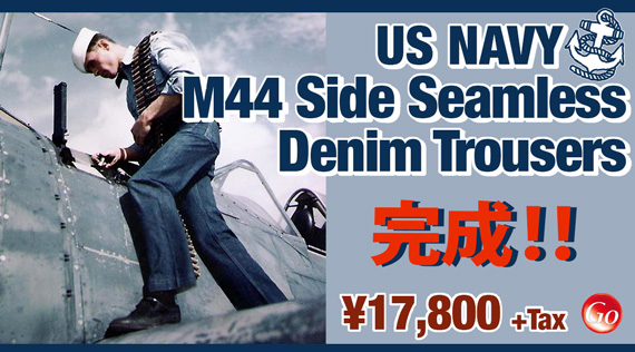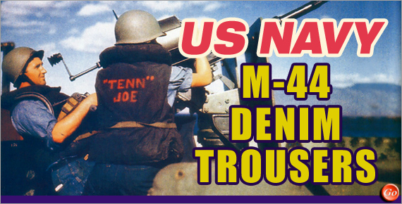 大戦まではデッキ上、人目に付く場所での着用を禁止された作業用『Dangaree Working Uniform(シャンブレーシャツ & デニムトラウザーズ)』であったが、参戦以降は一般兵士/下士官用の戦闘用としても広く使用された『US Navy M-44 Denim Trousers』である。
