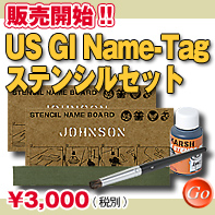 米軍純正ステンシル・マシーンを使用しご希望名を打ち抜いたステンシルボード、インキ、ブラシ、米軍実物ネーム・テープの4種・5点セットの販売を開始しました。プリントしたネーム・テープを服・バッグ等に縫い付けるも良し、服・バッグ等に直接プリントするも良し、種々の楽しみ方を工夫下さい。