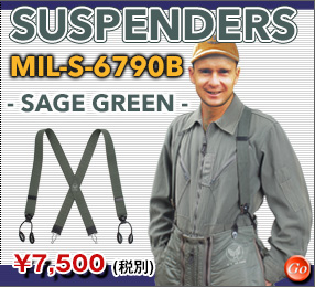 日本人には若干理解できかねるが、西部開拓時代を経験したアメリカにおいて、ワークパンツと共にあったサスペンダーは『男らしさ』の象徴でもあった。ミリタリーにおいても各種のタイプが採用支給され、とりわけ50年代USAF(米空軍)において支給されたフライング トラウザーズに使用された2種のサスペンダー、『AF ブルー色の6790A』、『セージグリーン色の6790B』の存在感は秀逸である。実物の入手が極めて困難な現在において、MASH復刻品がミリタリー衣料好きの一助になることを願うものです。
