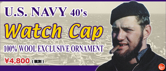 各国海軍において伝統的に使われてきた『ウオッチキャップ』その語源が、見張る、監視するを意味する『ウオッチ』からのものである事は云うまでも無い。縫製された地縫い部分を二本針でかがり縫われ仕上げられた40Sネービーウオッチキャップ、古き良き時代の海軍ニット帽である。